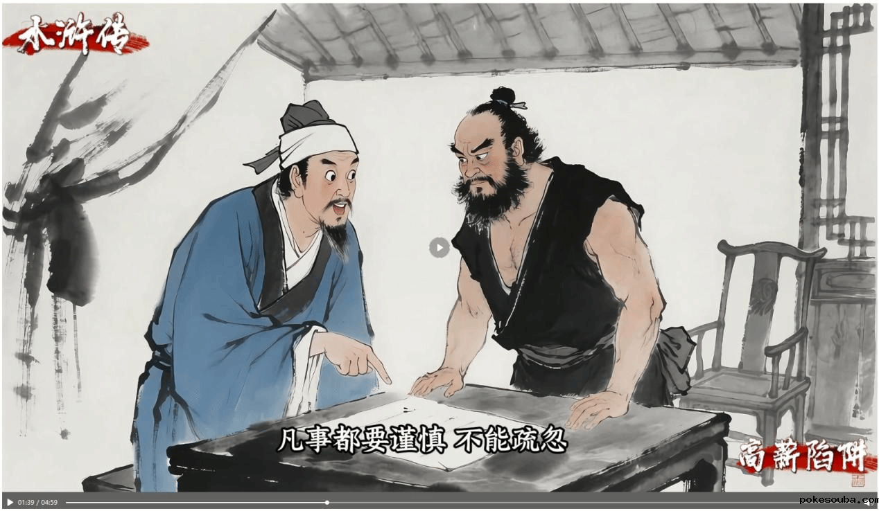 作品以“四大名著经典故事+现代骗局”为创意主线,设计了“西游记之AI换脸”“水浒传之高薪陷阱”“红楼梦之好评返现”“三国演义之锦鲤谜团”四大单元,将名著元素与网络诈骗防范知识巧妙融合,让经典IP焕发出反诈新活力。在创作过程中,充分运用AI技术,借助豆包AI生成连环画,即梦AI实现图片转视频,剪映AI完成多角色配音,展现了数字技术在反诈宣传中的创新应用。这种创新思路使作品适配全年龄段受众,有效提升了反诈知识传播效率。
